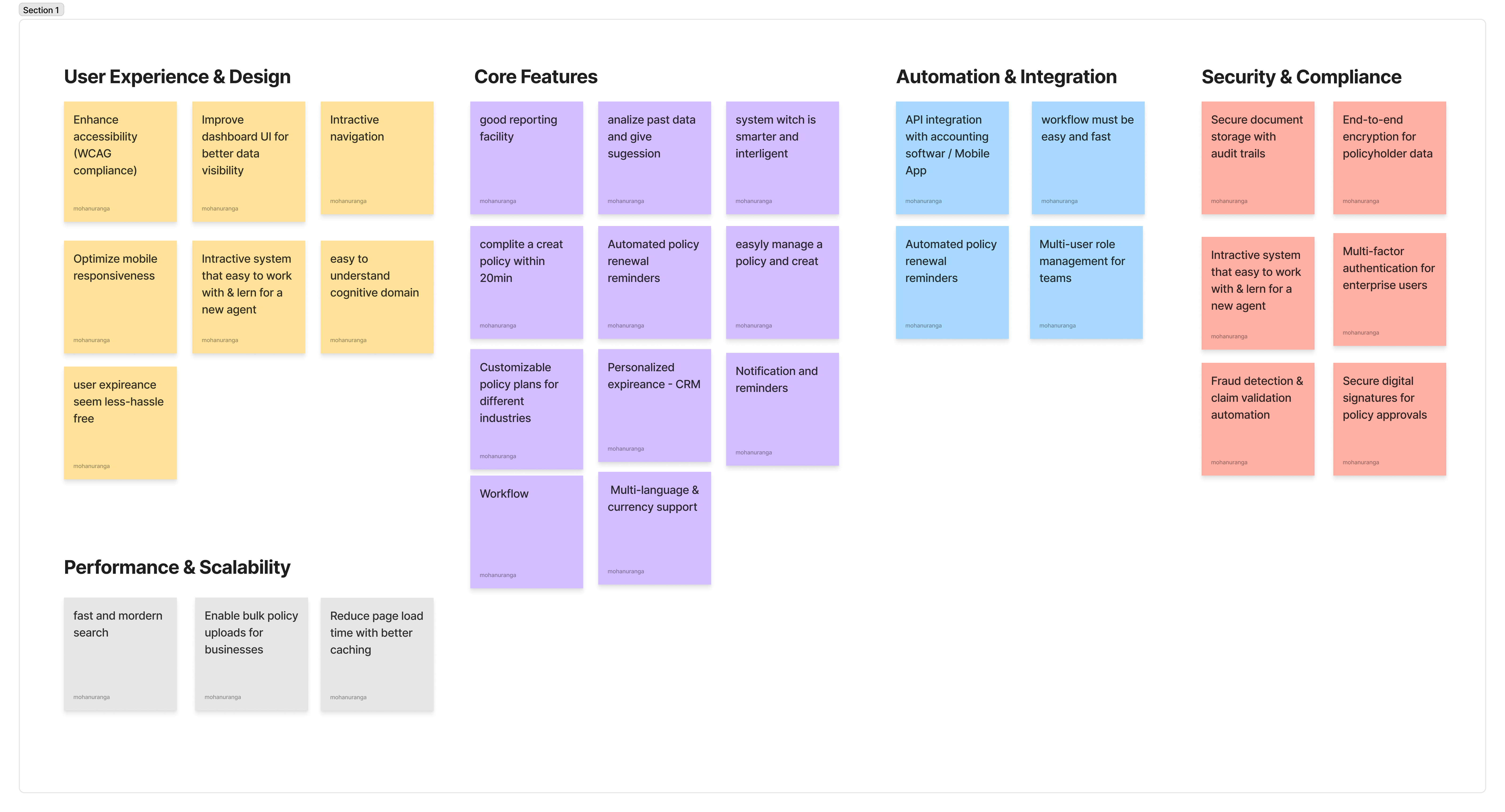 Here are some sticky note ideas for B2B insurance web-based application iterations